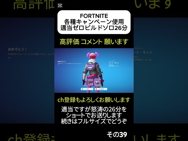 フォートナイト 適当 ゼロビルドソロ で各種キャンペーンアイテムを 見て 話して 使う 怒涛の26分間です。V-BUCKSカードキャンペーン、Twitch視聴キャンペーンのアイテム、ミュージックパスやクルーのアイテムもチラチラ見つつ 遊んでいきます。その39