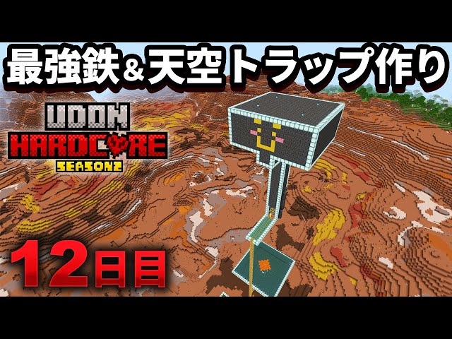 【マイクラ実況】鉄・経験値・ダイヤ装備・エメラルド 全てが手に入る最強のアイアンゴーレム&天空トラップを作る【ウドンハードコア2】12日目