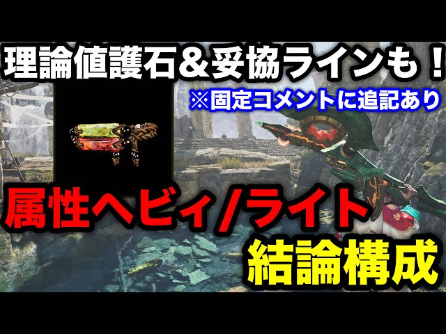 0 動画内の動画↓ 【モンハンワイルズ】属性ヘビィボウガン/ライトボウガンの理論値護石はこれ!全スキルを期待値化した上で光るお守り周回で狙うべき護石を解説! モンハンワイルズの動画…
