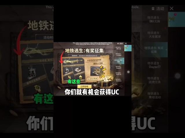 地铁逃生:15秒拿下传世武器,就能获得1500UC的机会!#地铁逃生 #pubgmnextstarprogram #pubgmobile #pubgmobilec9s25 #metroroyale