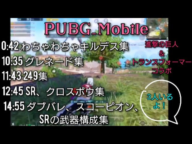 0 0:00 オープニング 0:42 わちゃわちゃkill,death集 10:35 グレネード集 11:43 249集 12:45 SR、クロスボウ集 14:55 ダブバレ、スコ…
